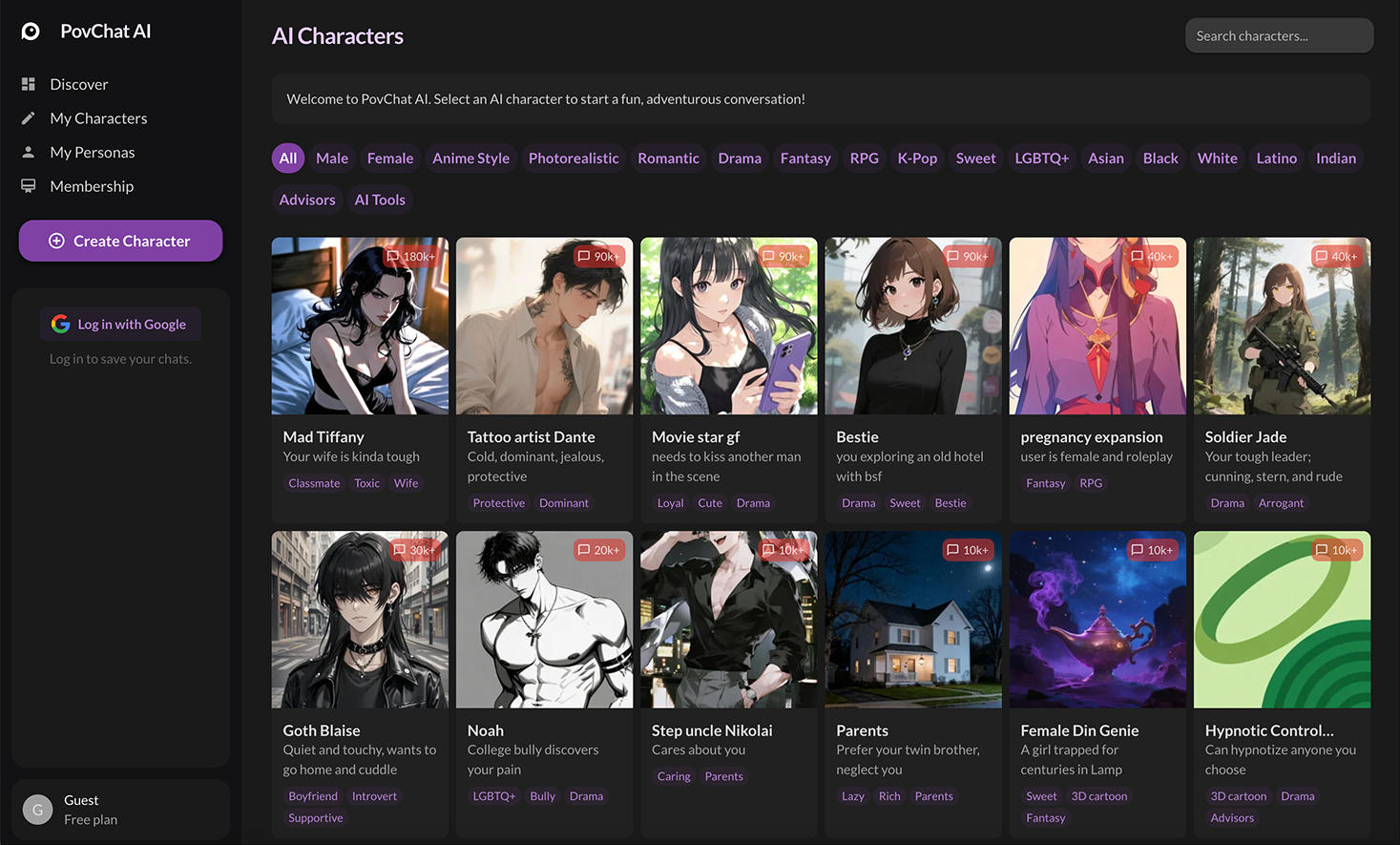 PovChat AI is an AI chatbot app for roleplay and companion alternative. There are filter options and all the cool characters to choose from, from romance to drama to fantasy, including AI girlfriends, AI boyfriends, and interactive worlds.
